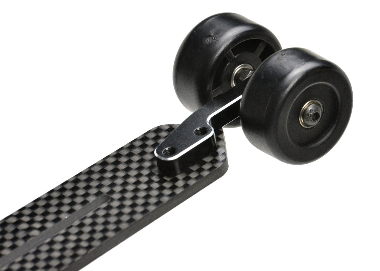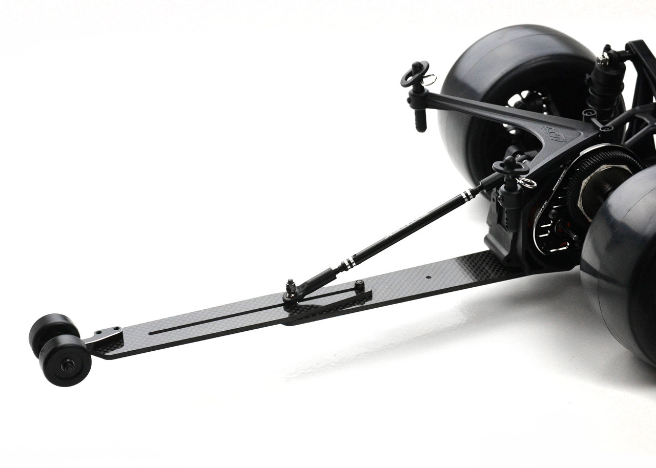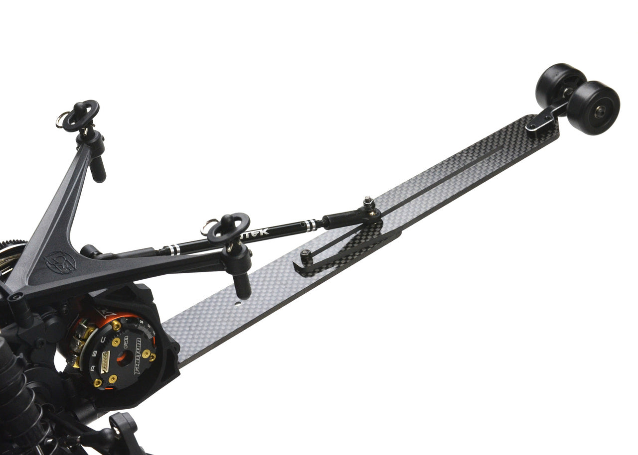 Extra long adjustable carbon fiber wheelie bar for the Losi 22S Drag car.
