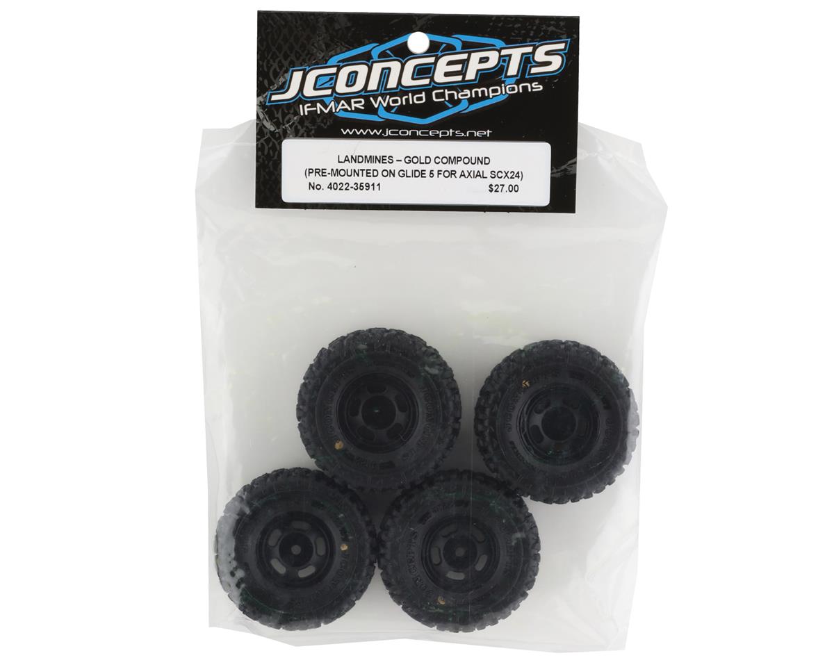 The JConcepts Landmines 1.0" Pre-Mounted Tires with Glide 5 Wheels and 7mm Hex are the ultimate option for scale performance for the Axial SCX24. Mounted on JConcepts Glide 5 wheels, these tires are designed to be capable of completing those difficult courses while being down-to-earth enough to carry a scale appearance.