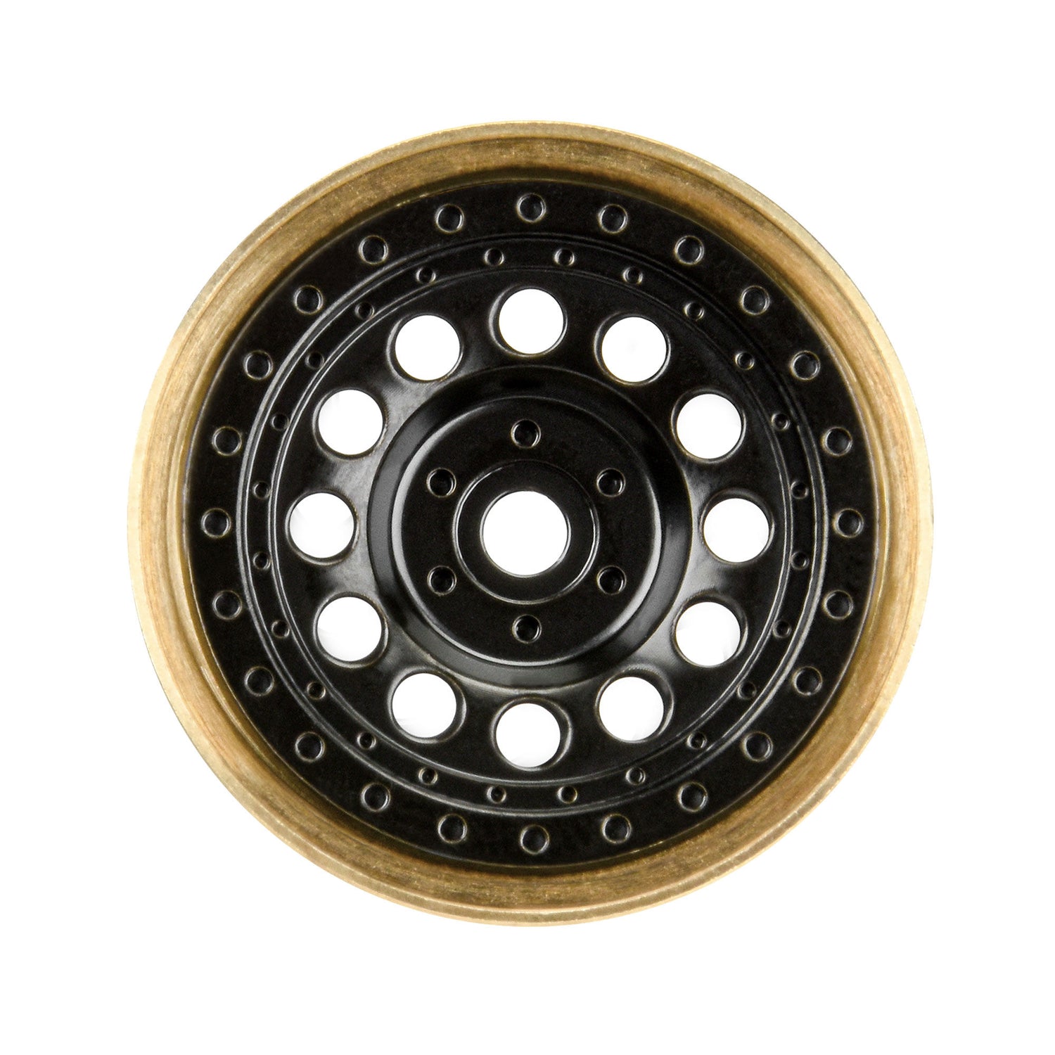 - Black Finished Brass Inner and Outer Wheel Faces with Raw Brass Inner Bead-loc Ring