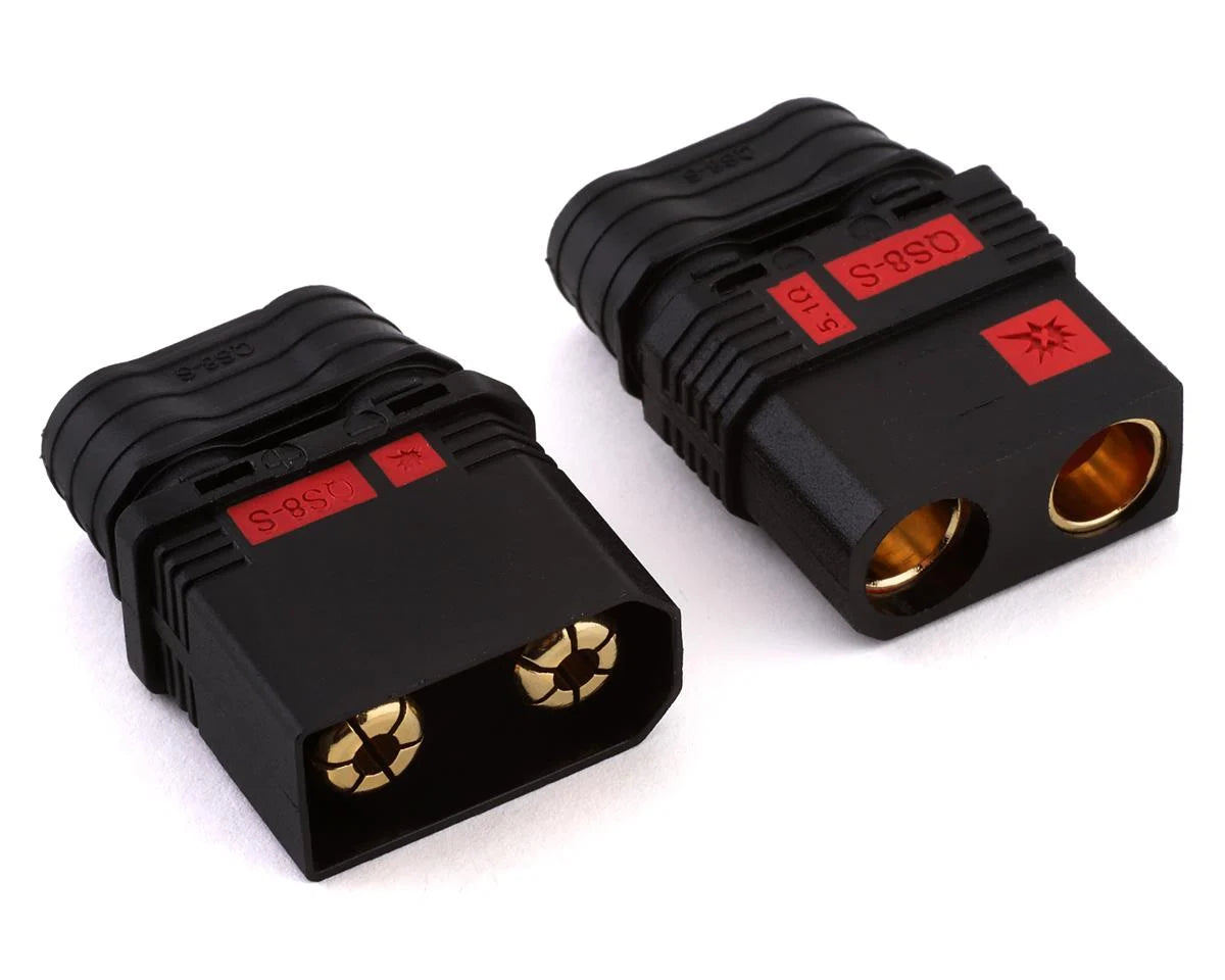 ProTek RC QS8 Anti-Spark Connectors are a high quality, high current connector that is perfect for high voltage applications. Not only is the connector capable of handling spikes in excess of 300 amps, the design provides an anti-spark connection that eliminates the dreaded POP when you plug in the battery helping to extend the life of the connector. High voltage bashers, speed run enthusiasts and pilots of all disciplines can benefit from this advanced connector technology.